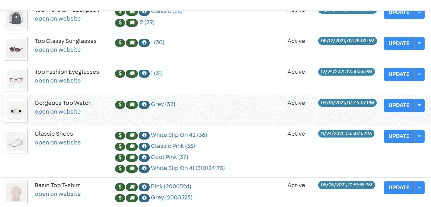 Set up similar products in your store’s Products and SKU. Access your store’s Admin and go to Products > Catalog > Products and SKU.